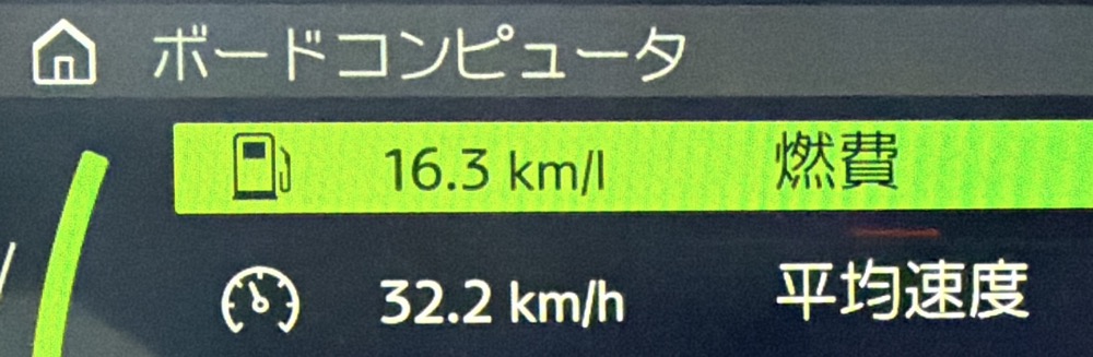 ボードコンピューターはの燃費表示は16.3km/Lです。